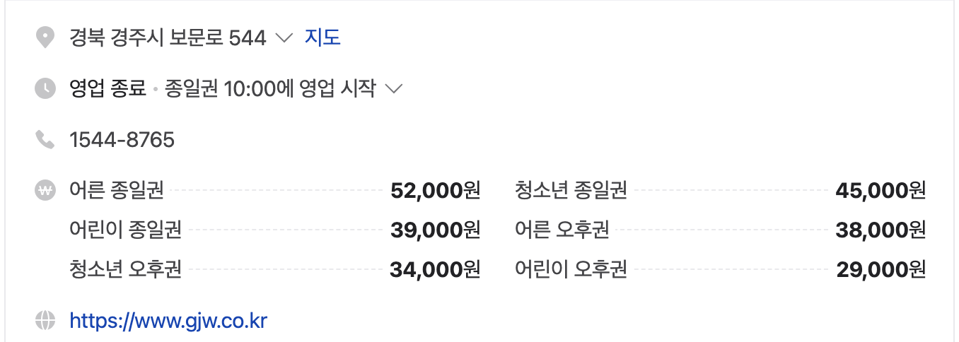 경주월드는 단순한 놀이공원을 넘어 스릴과 휴식, 가족 간의 유대감을 모두 충족시키는 완벽한 여행지입니다. 짜릿한 놀이기구, 가족 친화적인 시설, 계절마다 새로운 이벤트까지 경주월드에서는 모두가 행복한 하루를 보낼 수 있습니다. 역사와 자연이 어우러진 경주 여행에 경주월드를 추가해, 특별한 추억을 만들어 보세요!